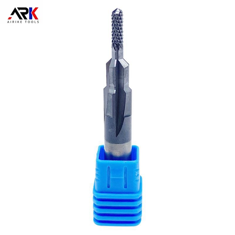 Frezensnijder met micro-tandenmes: de snijrand heeft een klein tandblad, dat de precisie van het snijden en verbeteren van de oppervlaktekwaliteit van de verwerking kan verbeteren, maar de sterkte van de micro-tanden is relatief zwak en de ontwerp- en productie-eisen van het gereedschap zijn relatief hoog. De freesnijder die wordt gebruikt voor het verwerken van composietmaterialen van koolstofvezel kan bijvoorbeeld oppervlakteschade onderdrukken door micro-tandenbladen te combineren met pure spiraalbladen3.